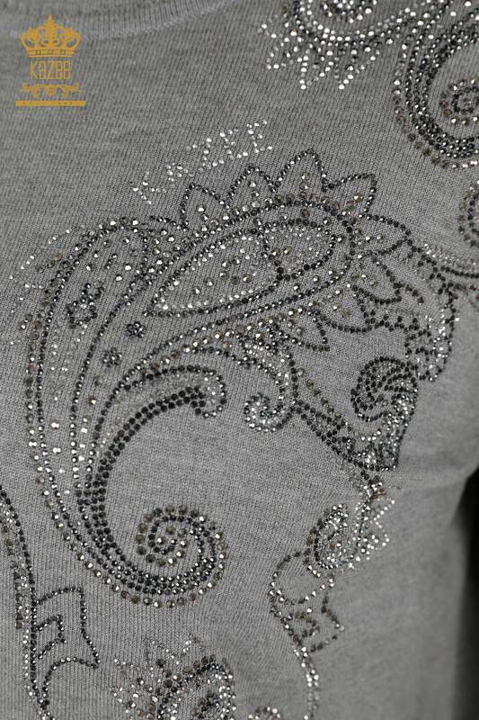 оптом женский трикотаж свитер с узором кристалл камень вышитый серый - 30013 | КАЗЕЕ