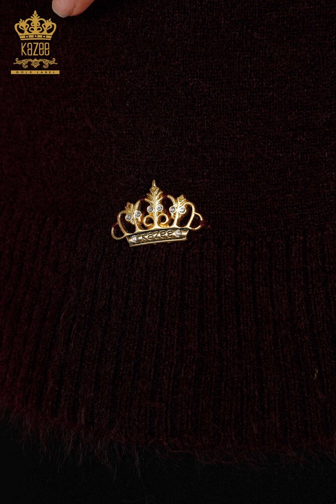 Женский вязаный свитер с логотипом Angora Basic Plum оптом - 18432 | КАЗИ