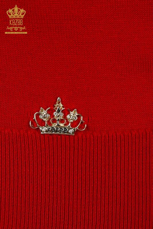 Женский трикотаж оптом Свитер с V-образным вырезом Basic Logo Red - 30181 | КАЗЕЕ