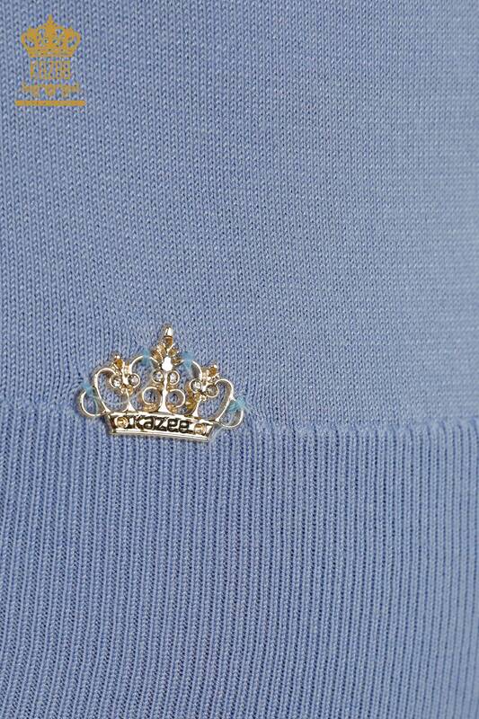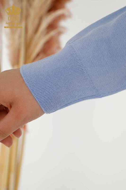 Женский трикотаж оптом Свитер с V-образным вырезом Основной логотип Синий - 30181 | КАЗЕЕ