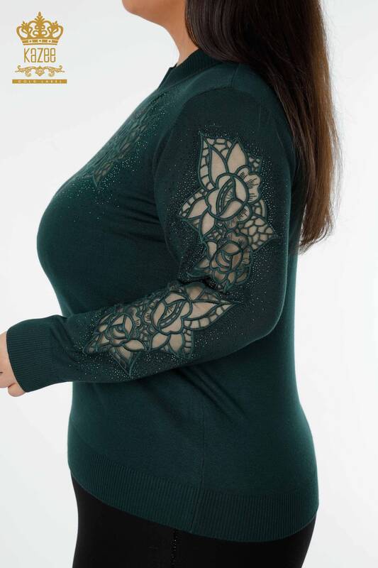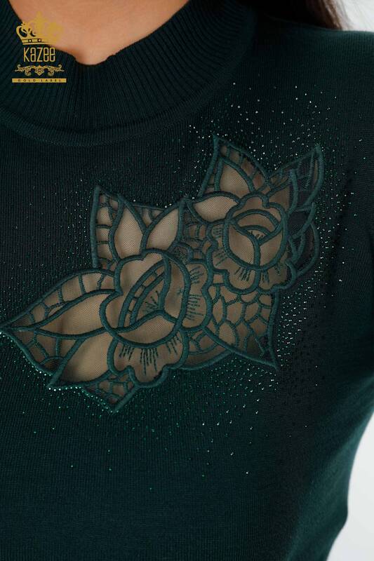 оптом женский трикотаж свитер тюль подробный камень вышитые розы узор темно-зеленый - 16832 | КАЗЕЕ