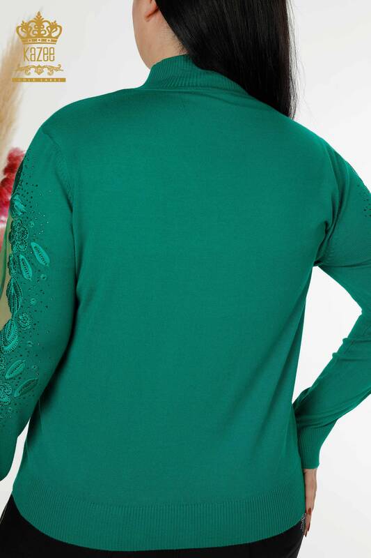 Vente en gros Pull Femme Tricot Manches Tulle Pierre Détaillée Brodé Vert - 30123 | KAZEE