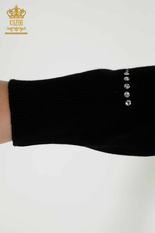 оптом женский трикотаж свитер с круглым вырезом вышитый камнем черный - 30157 | КАЗЕЕ