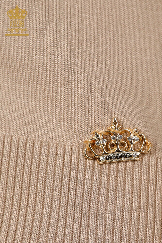 Оптовая Женщин Трикотаж Свитер Американская Модель Стенд Воротник Вискоза Темно Бежевый - 16168 | КАЗЕЕ