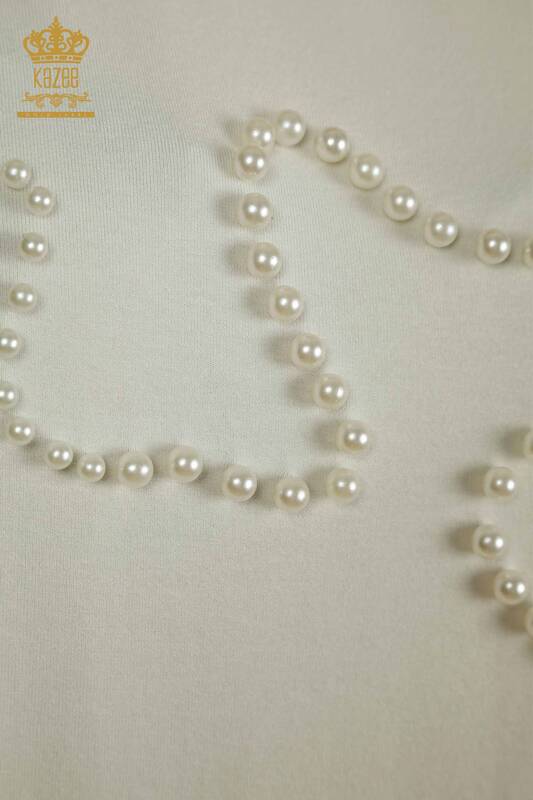 Оптовая Женская Блузка Вышивка Бисером С Коротким Рукавом Экрю - 79196 | КАЗЕЕ