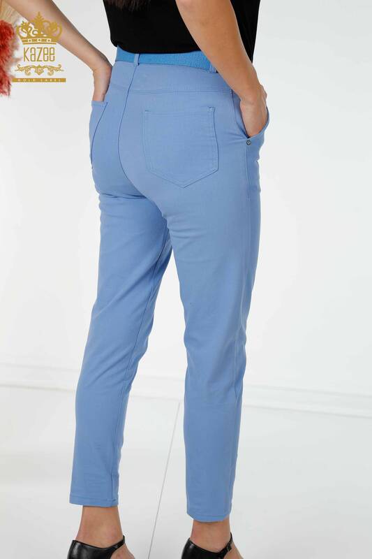 Джинсы женские оптом с карманом на поясе синего цвета - 3498 | КАЗЕЕ