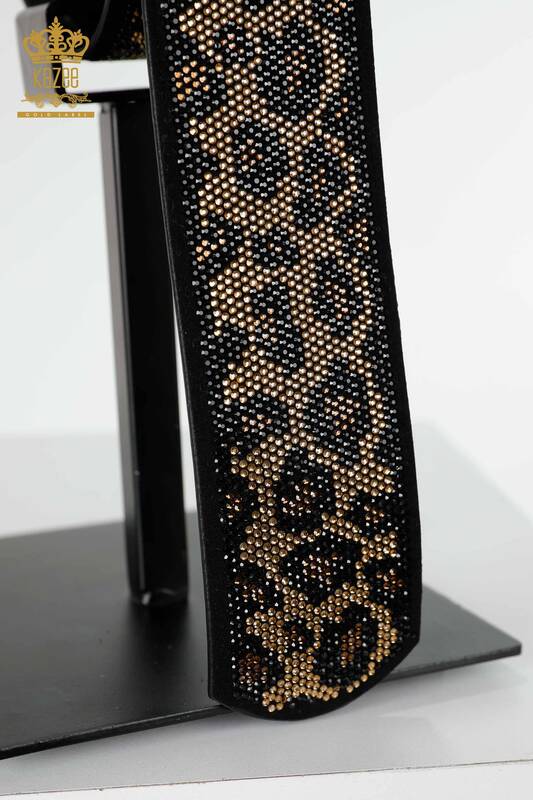 Женский пояс оптом с леопардовой вышивкой черного цвета - 509 | КАЗЕЕ