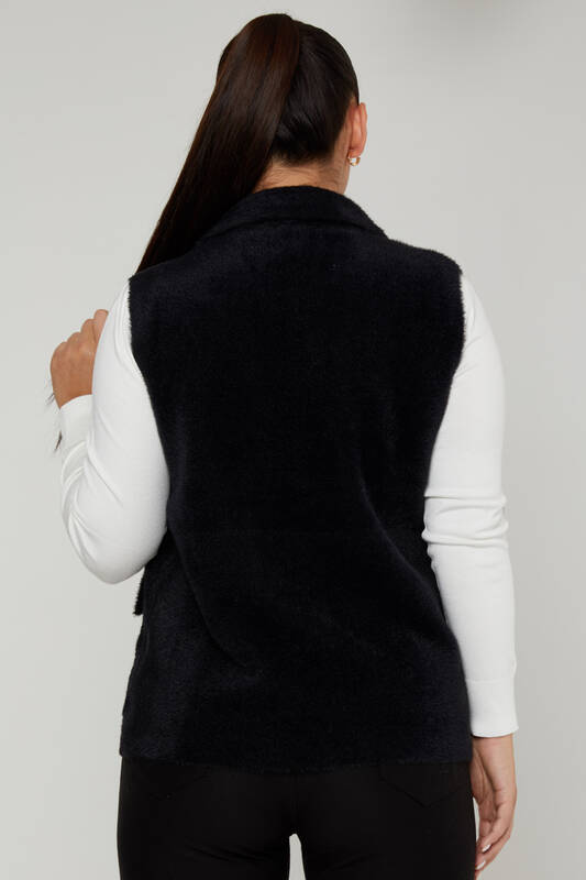 Жилет из ангоры с карманом, украшенным жемчугом, черный - 30999 | KAZEE (Набор из 3 шт. M-L-XL)